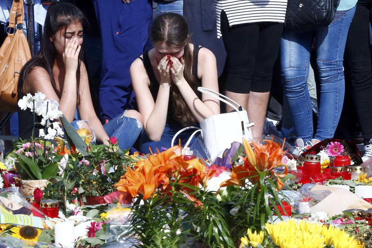 Foto: Reuters. Jovens choram no local do atentado num shopping de Munique, Alemanha.