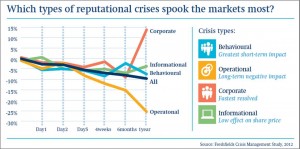 Segundo o autor, crises operacionais (quando o funcionamento da empresa é interrompido devido a um megarecall ou a um desastres ambiental) têm um impacto modesto nos dois primeiros dias após o desencadear da crise, mas têm um efeito de mais longo prazo sobre o preço das ações, que podem cair quase 15% depois de seis meses . Um quarto do capital pode estar abaixo um ano depois. Estes tipo de crise causa medo nas empresas e ameaça a reputação, pela capacidade de impactar a imagem durante um período de tempo maior.